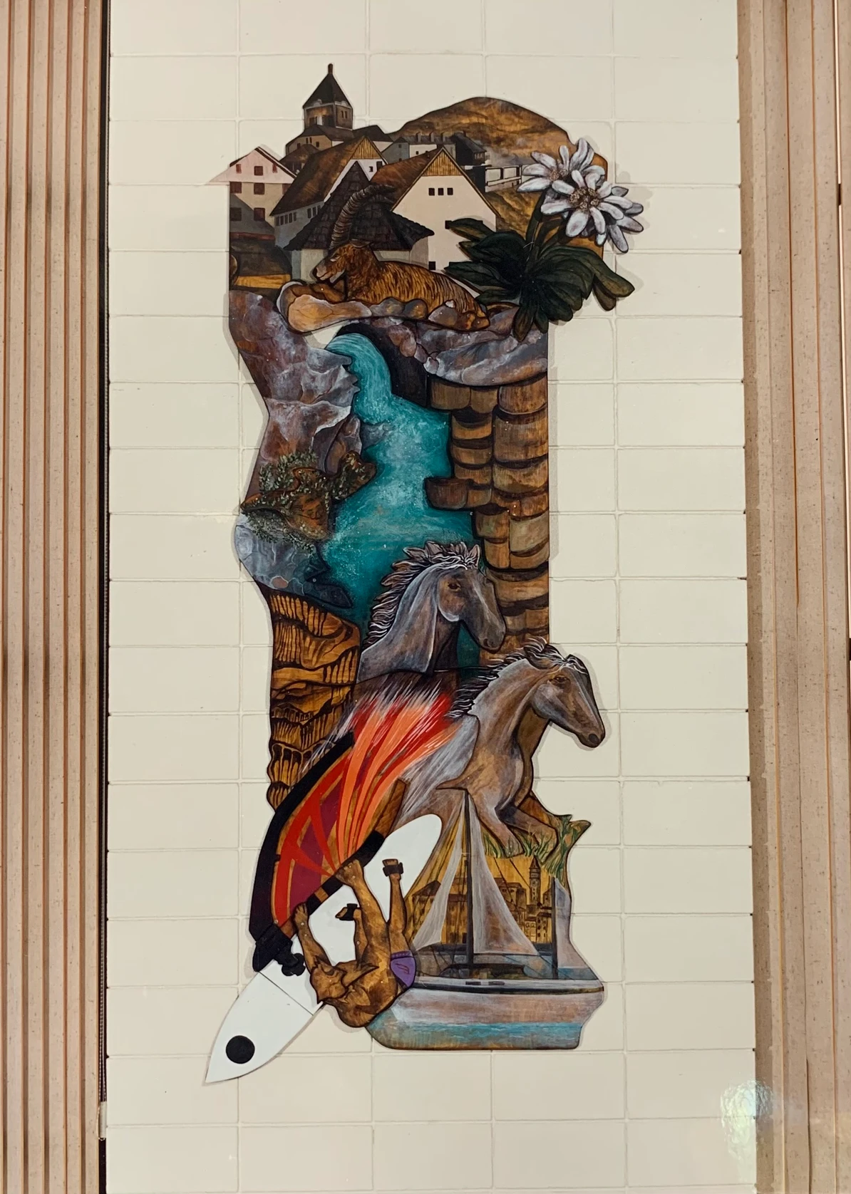 The artwork is created using a variety of thicknesses and types of PINE WOOD.